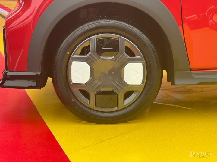 车身侧面嵌入猪猪侠跑步动漫贴纸,辨识度十足。B柱配备金色“猪鼻子”LOGO,充电口盖板也印有专属标识,车尾配备大尺寸扰流板。
