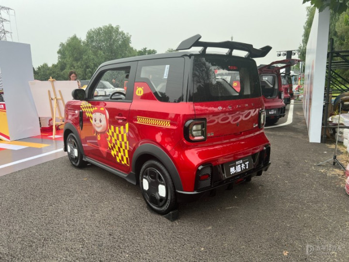 吉利熊猫卡丁猪猪侠限定版整体延续现款车型设计,最大的不同时采用了猪猪侠限定版专属“闪电红”涂装,采用双层漆面工艺,在不同的光照环境下能呈现不同的色彩质感。