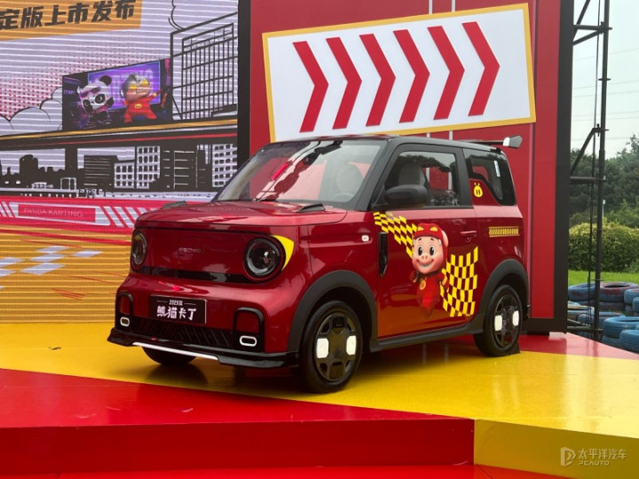 1、联名设计:熊猫卡丁猪猪侠限定版专属闪电红车色,车身融入猪猪侠元素,唤醒童年情怀。